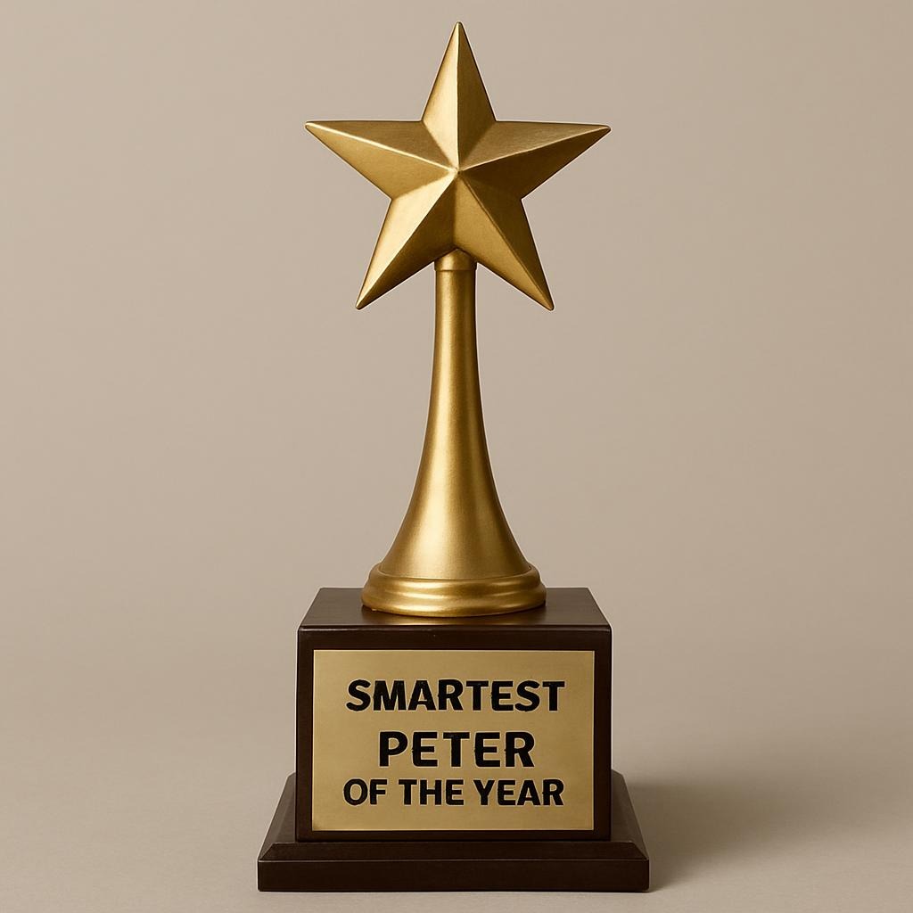 Peter entered the Smartest Peter award program and went against 500 other people. Peter easily won!